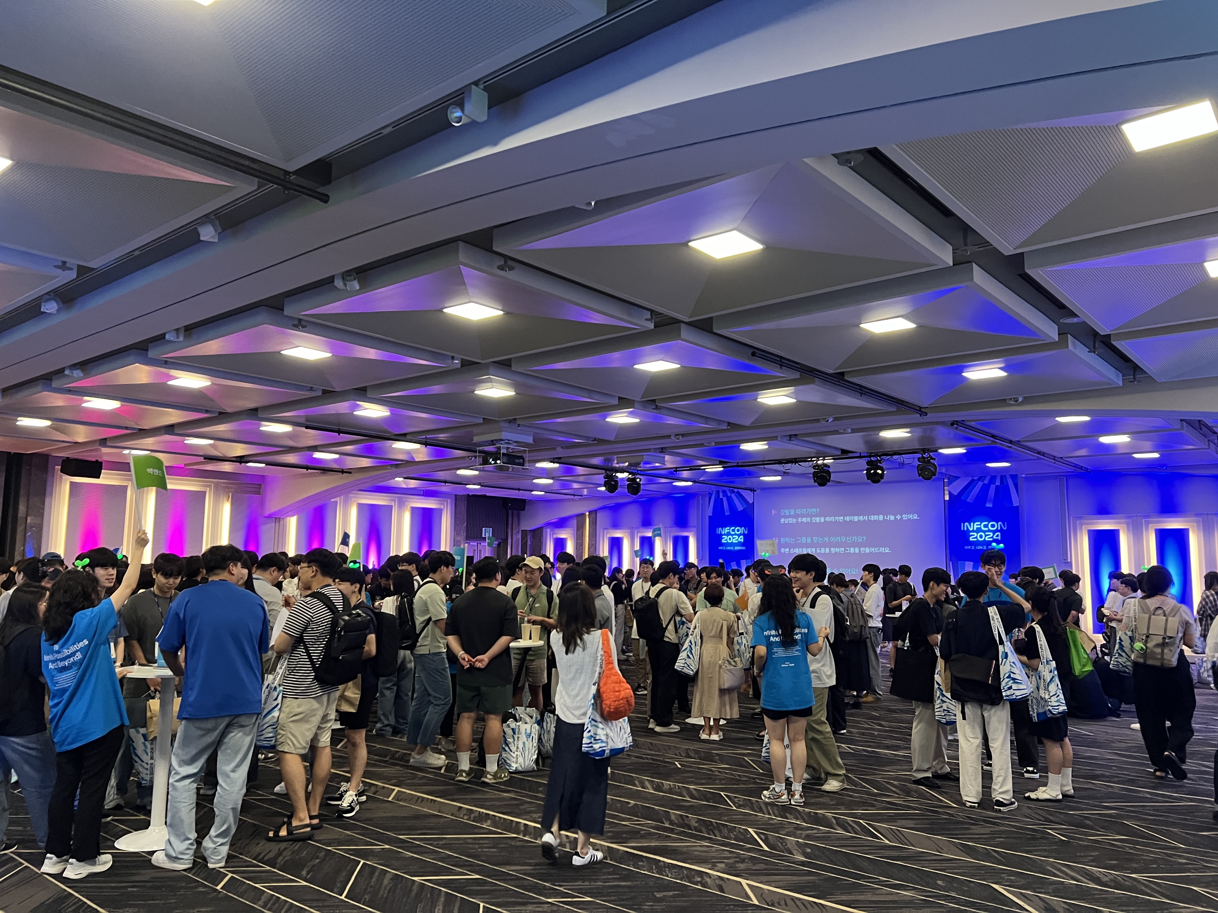 특별히 개발자 컨퍼런스는 처음이라 인프콘 행사일인 8월 2일이 될 때까지 너무나 설레는 마음으로 기다렸던 것 같다. 8월 2일 당일 코엑스 그랜드볼룸으로 가서 인프콘 행사를 참여했다~ 9시가 되기 전에 도착했음에도 사람들은 꽤나 많았다.